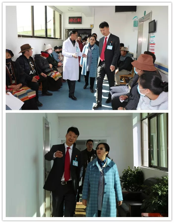 在阜康醫(yī)院綜合院區(qū),羅梅副主席調(diào)研了醫(yī)院急診科、超聲科,親切問(wèn)候就診患者。在醫(yī)院五樓院史館,羅梅副主席參觀了阜康國(guó)際醫(yī)院設(shè)計(jì)效果圖,聽(tīng)取了阜康醫(yī)療積極踐行"百企幫百村”精準(zhǔn)扶貧行動(dòng)、投入700萬(wàn)元對(duì)口援助嘉黎縣人民醫(yī)院、夏瑪鄉(xiāng)衛(wèi)生院項(xiàng)目的介紹。