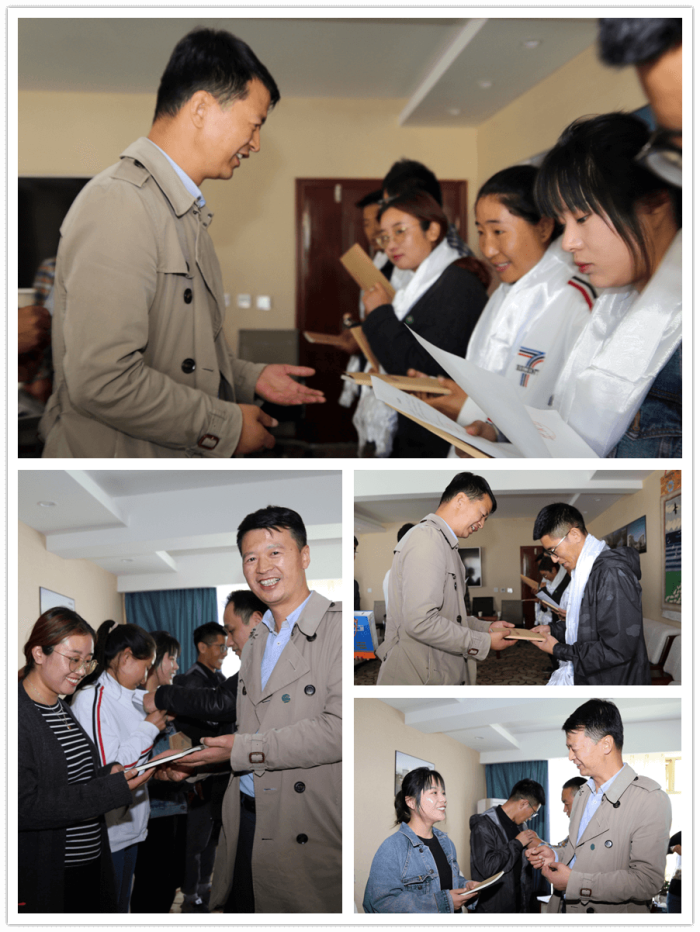隨后,王斌董事長向7名規(guī)培生門頒發(fā)了《阜康員工守則》,并敬獻了潔白的哈達,佩戴了阜康院徽,他臨別叮囑:"謹記阜康囑托,謹守阜康準(zhǔn)則,不辱阜康之名,為阜康爭榮!希望你們能夠腳踏實地在華西醫(yī)院和成都市第三人民醫(yī)院帶教老師的指導(dǎo)下完成規(guī)培計劃,并在三年內(nèi)考過執(zhí)業(yè)醫(yī)師資格證和規(guī)范化培訓(xùn)資格證,按時歸來服務(wù)阜康、報效西藏!”
