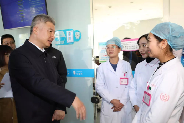 在婦產(chǎn)兒童分院口腔科,莊嚴書記見到了今年剛從內(nèi)地畢業(yè)回藏工作的大學(xué)生強巴卓嘎。強巴卓嘎告訴莊嚴書記,自己在內(nèi)地讀了5年口腔專業(yè),在阜康工作很開心,收入也不錯,現(xiàn)在有越來越多的同學(xué)愿意到民營企業(yè)工作。莊嚴書記勉勵強巴卓嘎認真學(xué)習(xí)臨床技術(shù),要不斷學(xué)習(xí)深造,提高自己專業(yè)技能,無論在公立醫(yī)院還是民營醫(yī)院工作,都是在為百姓的健康服務(wù)。