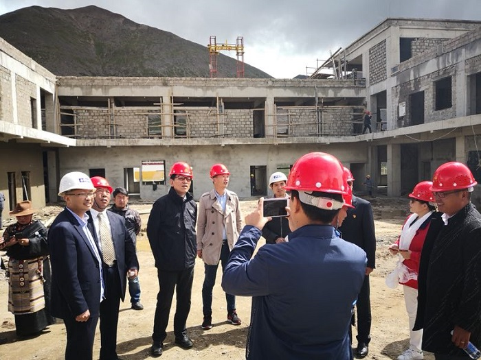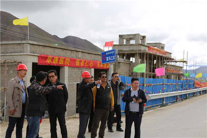 2018年了8月9日,受阜康邀請(qǐng),西藏自治區(qū)政協(xié)副主席、區(qū)工商聯(lián)主席、區(qū)總商會(huì)會(huì)長(zhǎng)阿沛·晉源,拉薩大昭寺管家洛桑,西藏自治區(qū)社會(huì)科學(xué)院原處長(zhǎng)次旺仁青,西藏阜康醫(yī)療股份有限公司黨委書記、董事長(zhǎng)王斌,西藏阜康醫(yī)療股份有限公司黨委副書記、副總經(jīng)理陳彬,西藏阜康醫(yī)院名譽(yù)院長(zhǎng)嘎布,阜康生殖醫(yī)學(xué)中心實(shí)驗(yàn)室主任劉鋒,阜康體檢中心主檢師瓊瑪,阿沛·晉源主席秘書旦增一行早上8點(diǎn)從拉薩出發(fā),一路顛簸馳騁于下午2點(diǎn)50分許抵達(dá)那曲地區(qū)嘉黎縣夏瑪鄉(xiāng)。聽(tīng)說(shuō)晉源主席要來(lái)視察衛(wèi)生院的建設(shè)工作,嘉黎縣縣長(zhǎng)吾金不顧受傷的左腿帶領(lǐng)當(dāng)?shù)馗刹咳罕娫缭绲群蛟谙默斷l(xiāng)衛(wèi)生院建設(shè)現(xiàn)場(chǎng)。
