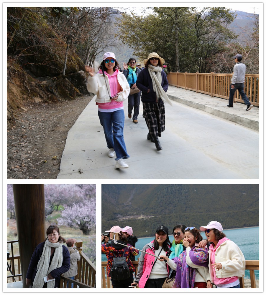 第二天早晨,拓展團(tuán)隊馬不停蹄從酒店出發(fā),趕到林芝市林芝鎮(zhèn)嘎拉村,恰逢這里在舉行2018年林芝第十六屆桃花旅游文化節(jié),十里桃林遠(yuǎn)觀氣勢磅礴,如海如潮,近賞就像胭脂云彩,似少女初妝,在欣賞壯麗的自然風(fēng)光同時,朵朵桃花爭相怒放,以向上的姿態(tài)盛開著,也激勵著我們的隊員,在工作和生活上都要以一種向上的姿態(tài),積極迎接每一天的挑戰(zhàn)!