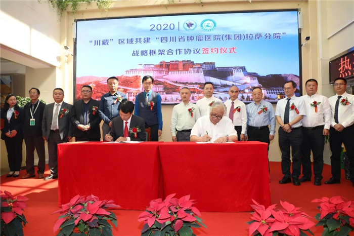 四川省腫瘤醫(yī)院黨委書(shū)記郎錦義,西藏阜康醫(yī)療股份有限公司黨委書(shū)記、董事長(zhǎng)王斌代表雙方共同簽署《川藏區(qū)域共建四川省腫瘤醫(yī)院(集團(tuán))拉薩分院戰(zhàn)略框架合作協(xié)議》,隨后郎錦義書(shū)記向王斌董事長(zhǎng)進(jìn)行了授牌。
