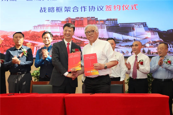活動(dòng)接下來(lái)舉行了揭牌和簽約儀式。自治區(qū)政協(xié)副主席、自治區(qū)工商聯(lián)主席、總商會(huì)會(huì)長(zhǎng)阿沛·晉源和拉薩城市建設(shè)投資公司黨委書(shū)記、董事長(zhǎng)多吉旺久共同為西藏康城腫瘤醫(yī)院揭牌。